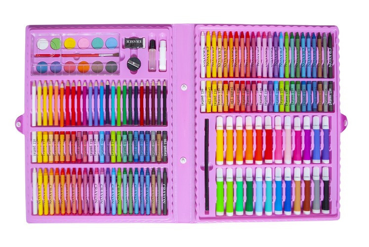 168 TÉTEL - hatalmas választékkal 24 zsírkréta, 24 filctoll, 48 olajpasztell, 48 gyertyapasztell, 12 akvarellfesték, hegyező, ragasztó, korrektor, radír, A4-es lapok könnyedén elkészíthetjük a legkifinomultabb, legkreatívabb és legeredetibb alkotásokat.