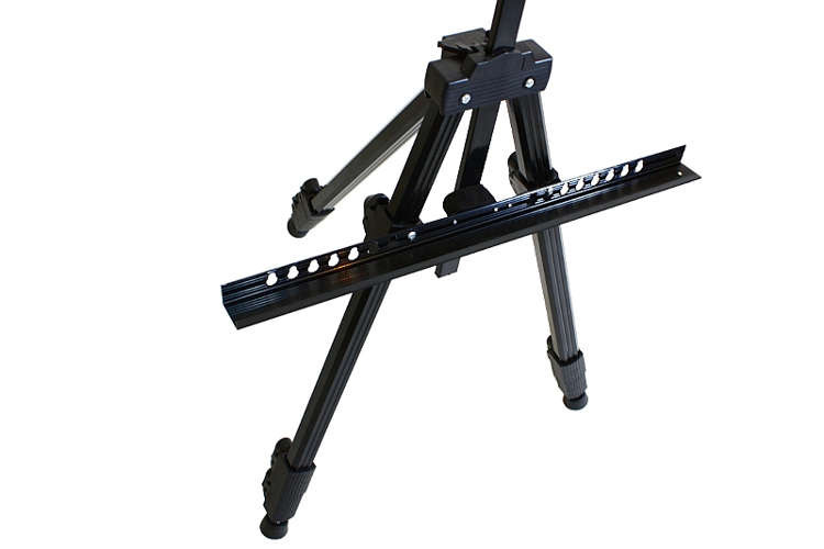 Könnyű és stabil festőállvány alumíniumból. A tartósan rögzített horog lehetővé teszi a ballaszt felakasztását és a készlet súlyának növelését, ami javíthatja a munkát erős szélben.