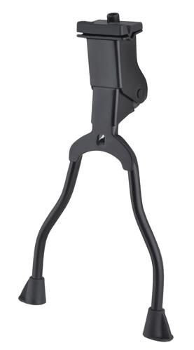 Dupla fém kerékpárláb a kerékpár hátuljára rögzíthető (a hátsó kerék közé). Központi rögzítés, csavarral. A készlet tartalmaz egy távtartót, amely megvédi a kerékpárt a karcolásoktól a láb felszerelésekor és megemeli a lábat (a távtartó eltávolításának lehetősége).