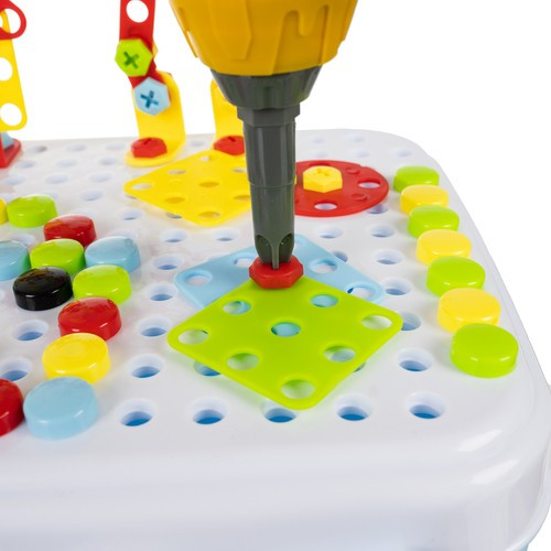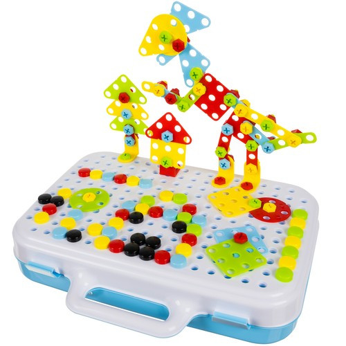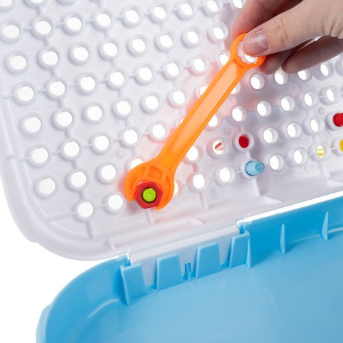 A kreatív szórakozás kreatív módja a szülőkkel. A szórakozás a képek / minták elrendezéséből áll, sok különböző forma (téglalap, négyzet, kör, háromszög) felhasználásával. A kiválasztott elemeket egy csavarhúzóval a bőrönd aljára csavarozzák, amelyen speciális lyukak vannak.