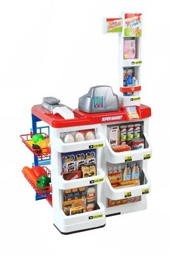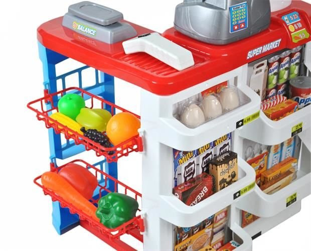 A szupermarketben való vásárlás nemcsak szórakoztató hanem megtanítja az egyes termékek ismeretét és a fizetési eszközök használatát. Lehetővé teszi továbbá, hogy a gyermek megértse a társadalomban való működés szabályait, és megismerje a családi felelősséget. A szupermarketben való játékhoz fantasztikus készlet egy pénztárgép, papír, játékbankjegyek, a termékek vonalkódolvasója, egy mérleg és egy bolti pult, polcokon és polcokon elhelyezett különböző termékek, valamint egy kerekes kocsi.