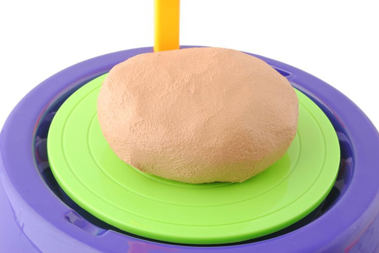 A fazekaskoronggal ellátott szobrászkészlet nagyszerű játék, amellyel saját kancsókat vagy más agyagformákat készíthet gyermeke.