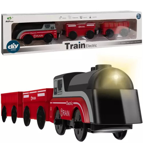 • MŰSZAKI ADATOK - szín: piros / fekete; anyag: műanyag; lámpa világítás színe: meleg fehér; elemmel működik: 1 x AAA (nem tartozék); a kocsisor hossza: 30 cm: a mozdony méretei: 11 x 3 x 5 cm, a vagon méretei: 9 x 3 x 3,5 cm, súly: 117 g; súly a csomagban: 189g.