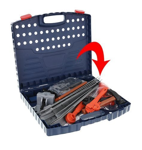 • 2 az 1-ben - az egész készlet elfér egy praktikus, könnyen hordozható tokban. Minden elem elfér benne, és lehetővé teszi a gyermek számára, hogy elvigye őt az óvodába, nagyszülőkhöz vagy barátokhoz. Kihajtás után a bőrönd egy műhely lesz egy nagy munkalap, csak el kell fordítani a bőrönd egyik részét 180 fokban! Ezután a készletben található lábak és csavarok segítségével csavarja be őket, hogy műhelyt hozzon létre. Egy nagyobb gyerek biztosan képes lesz egyedül is megcsinálni! Egy nagy munkalapot beszerezve a gyermek egy csavarhúzót is elhelyezhet rajta, a bal oldalon van erre kijelölt hely. A kisgyermek rá tudja szorítani a deszkákat.