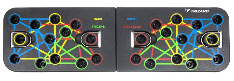 • A SZÍNEK MEGJELÖLNI, HOGY MELYIK ÍZMŰKÖDÉST DOLGOZZA - a lehetséges támaszbeállítások 4 színe jelzi a leginkább érintett izomcsoportot: zöld a hát, kék a karok, sárga a tricepsz és piros a mellkas.