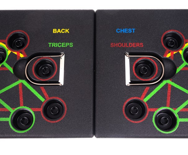 • TOLATKOZÓKAPCSOK ÉS FITNESS KABELEK BEÁLLÍTVA - a fekvőtámasz fogantyúk lehetővé teszik az összes felső izomzat edzését a fogantyúk szögének és helyzetének beállításával. A plank a saját testsúly használatával lehetővé teszi a felső végtagok és a törzs izmainak megformálását, és a rugalmas összekötőknek köszönhetően a fenék és a lábak ápolását is.