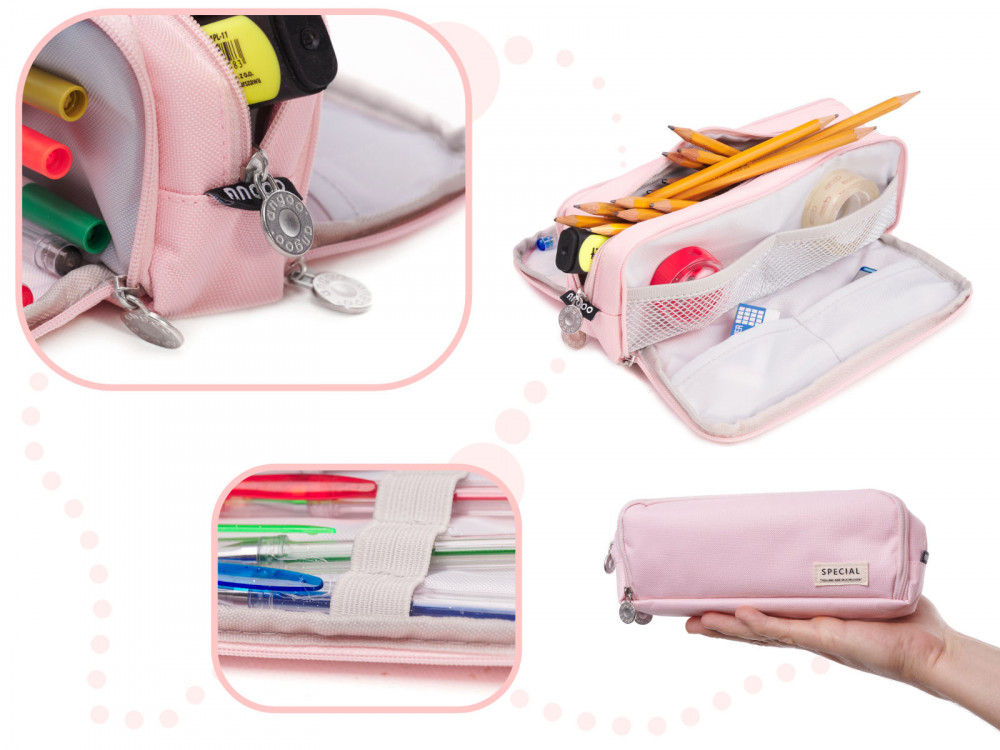 Iskolai tolltartó/kozmetikai táska, 3in1, rózsaszín