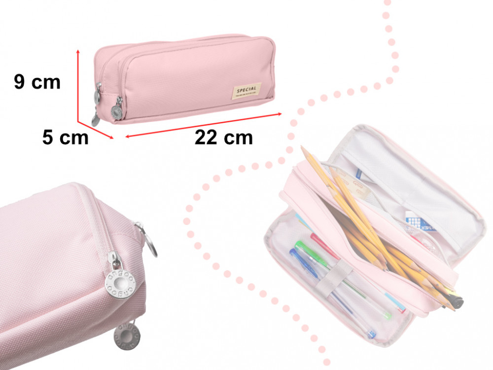Iskolai tolltartó hármas tasakos táska rózsaszín