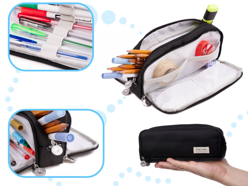 Iskolai tolltartó hármas tasakos hiúsági tok fekete